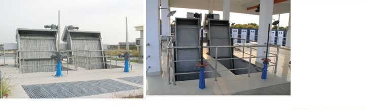 該設(shè)備采用鏈板回轉(zhuǎn)式,由固定柵條組成過水柵面,當(dāng)污水流過時,大于柵隙的雜物被攔截,耙齒板的耙齒深入柵條的間隙中,當(dāng)驅(qū)動裝置帶動牽引鏈作回轉(zhuǎn)運動時,耙齒把截留在柵面上的雜物自下而上帶至出渣口,雜物依靠重力自行脫落,從卸料口中落下輸送機或垃圾小車內(nèi),然后外運或作進一步的處理。
