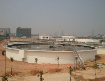 該設(shè)備采用中心傳動(dòng)、垂架式,污水進(jìn)入周邊配水槽內(nèi),經(jīng)槽底配水孔均勻的流入池內(nèi),并在周邊擋水裙板的作用下,水流從池底流向中心,污泥依靠自重沉積于池底,從而形成泥水分離,驅(qū)動(dòng)裝置驅(qū)動(dòng)中心豎架旋轉(zhuǎn),并帶動(dòng)刮臂及吸泥管旋轉(zhuǎn),在凈水壓力的作用下,污泥均勻的進(jìn)入吸管上布置的吸口,然后通過中心排泥管經(jīng)排泥井的套筒閥排出池外,排泥量的大小可由套筒閥的升降度來(lái)控制。